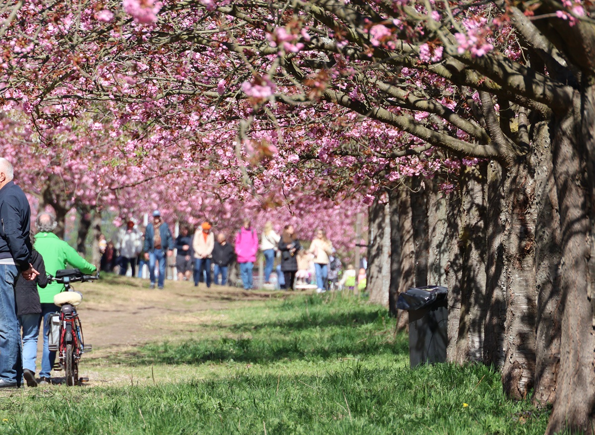 Endlich treiben sie aus und blühen in Zartrosa oder herrlichem Weiß – die Blüten der Kirschbäume lassen unsere Augen strahlen. Dieses Naturspektakel lockt gefühlt immer mehr Menschen an. Schon jetzt ist die Allee entlang des ehemaligen Mauerstreifens gut gefüllt. Gleich vorab einen Tipp: Wer früh morgens kommt, erlebt die Blütenpracht mit nur wenigen Personen. Ab dem späten Vormittag hingegen herrscht schon ein reges Treiben. Das hat auch seinen Charme, denn die Menschen scheinen redseliger, wenn sie über die Schönheit der Blüten staunen. Und Tipp Nummer zwei: Es gibt auch im Lilienthalpark eine Reihe von Kirschbäumen, und auch sie fangen die Blicke ein.