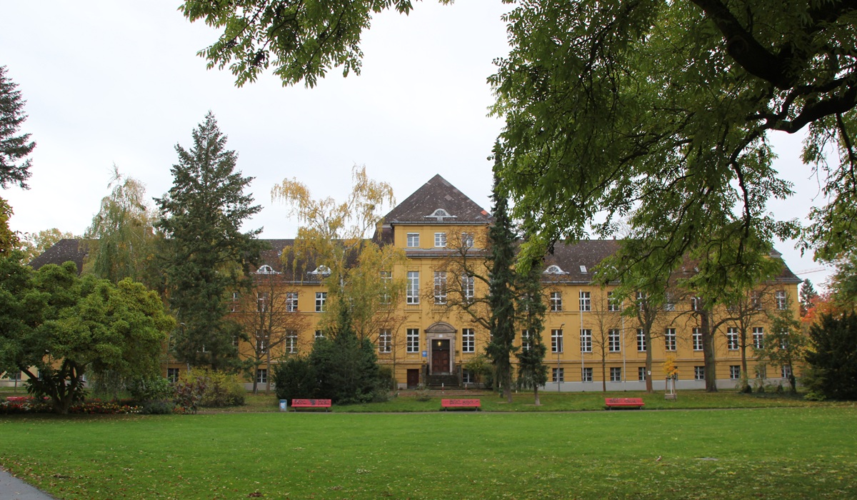 Das ist das Dienstgebäude des Umweltbundesamtes (UBA) in Berlin‑Dahlem – ursprünglich errichtet als neuer Standort der bereits 1901 gegründeten Königlichen Versuchs- und Prüfungsanstalt für Wasserversorgung und Abwasserbeseitigung.