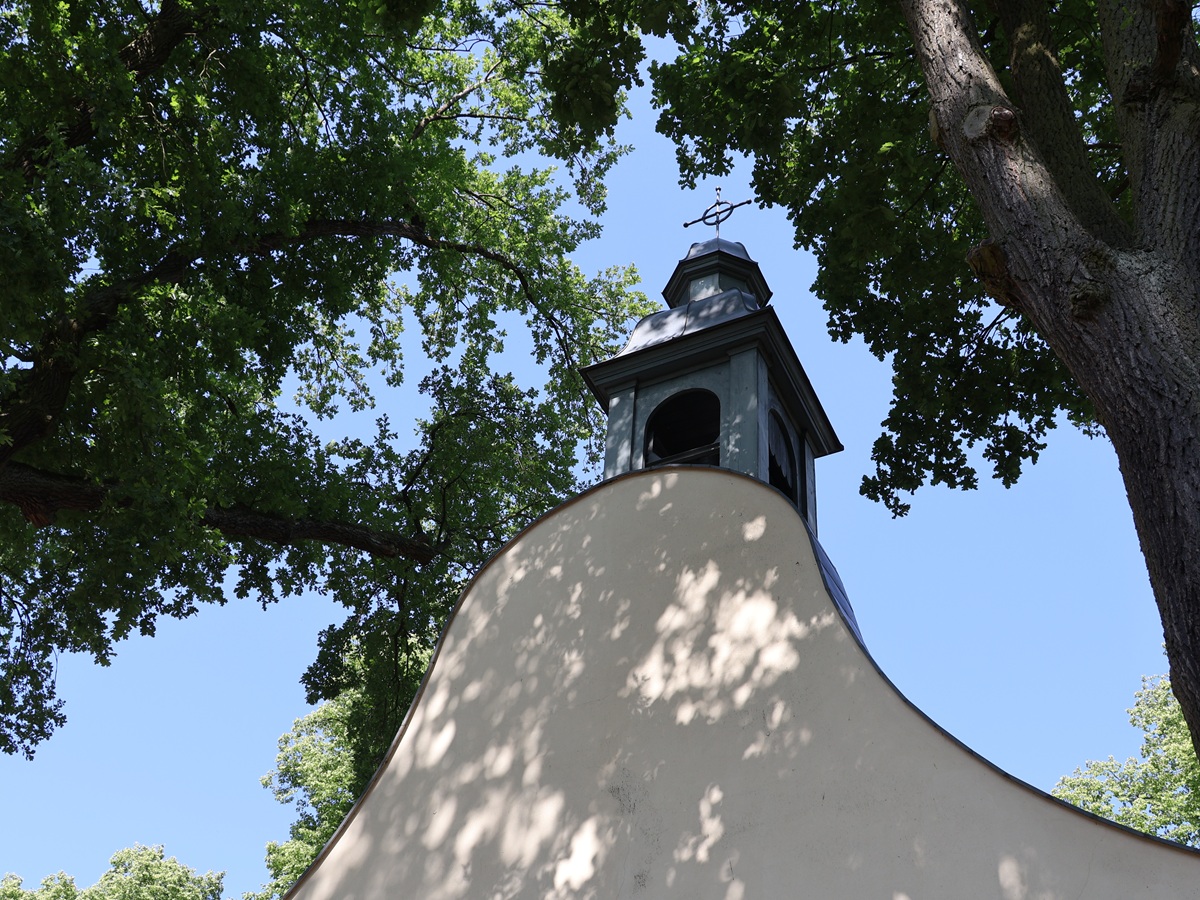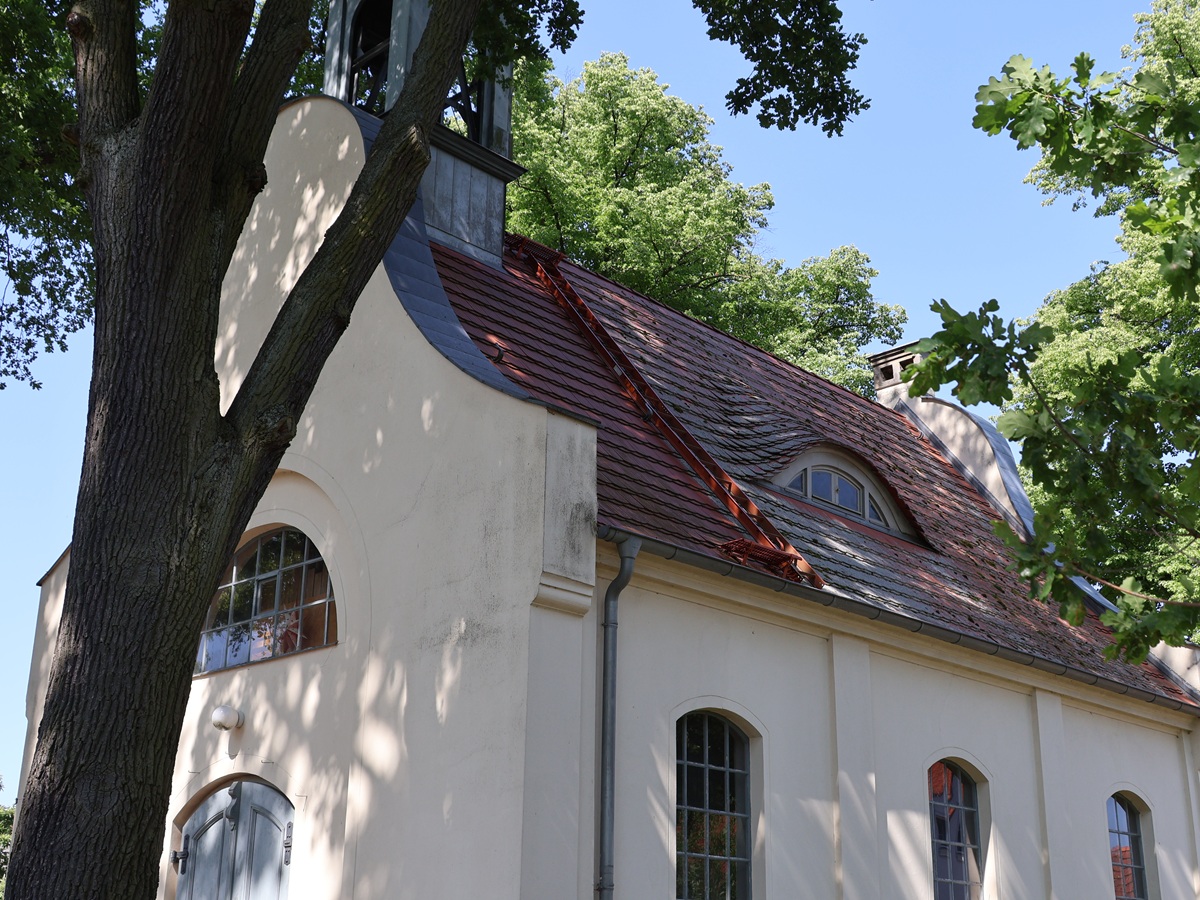 Wie es mit der Schule war, so war es auch mit der Dorfkirche. Sie wurde zur Gründung 1754 versprochen und 1899 beschloss man dann einen Bau beim Zimmermeister Kuhlmey aus Gütergotz in Auftrag zu geben, der fünf Jahre später – 1904 – fertig wurde. Auch der Innenbereich wurde von Kuhlmey nach Plänen des Professors Laske aus Potsdam gefertigt. Die Empore war übrigens ein Geschenk des Baumeisters. Und der Altarteppich war ebenfalls ein Geschenk, allerdings aus jüngerer Zeit. Von der Kaiserin Auguste-Victoria kamen 1905 Leuchter und ein Kruzifix. Insgesamt zahlte der Kaiser etwa die Hälfte als oberster Kirchenherr.
